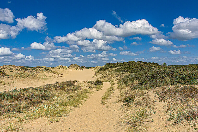 An Wanderwegen mangelt es entlang der belgischen Küste nicht und gerade in De Panne, wo circa ein Drittel aller Dünen Belgiens zu finden sind, ist die Kulisse für einen Ausflug zu Fuß optimal. Für jeden Fitnessgrad gibt es passende Routen. Dazu kommen abseits der Strände wunderschöne Wälder, Pfade von Dorf zu Dorf und Naturschutzgebiete wie De Westhoek. Es umfasst dabei eine abwechslungsreiche Landschaft und ist Heimat für eine große Vielfalt von Pflanzen und Tieren. Zu den beliebtesten Wegen zählt der Dünenpfad, der euch durch die hohen bewachsenen Sandhügel führt und einen einzigartigen Ausblick über die Nordsee ermöglicht.