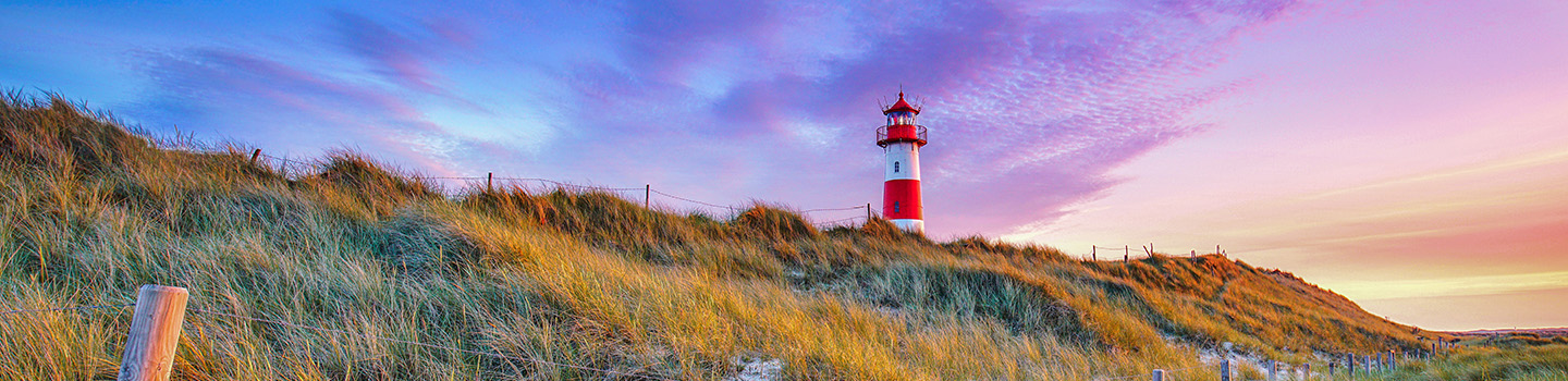 Einst Ruf als Reiseziel der Reichen und Schönen, heute beliebt bei Erholungssuchenden, Sportfans, Familien und Vierbeinern. Sylt in Schleswig-Holstein ist mit 99 Quadratkilometern die nördlichste und größte deutsche Nordseeinsel und per Bahn und Flugzeug erreichbar. Den eigenen Pkw könnt ihr bei der Überfahrt mit dem Autozug mitnehmen. Am rund 40 kilometerlangen Weststrand findet jeder ein Plätzchen – sei es im Sand, Strandkorb oder auf dem Handtuch. Für Abenteurer bieten sich Aktivitäten wie Wind- und Kitesurfen am Ellenbogen oder Wanderungen durch das Watt an. Bei Spaziergängen am Roten Kliff oder Radtouren zwischen dem südlichen Hörnum und nördlichen List kommen Naturliebhaber auf ihre Kosten.