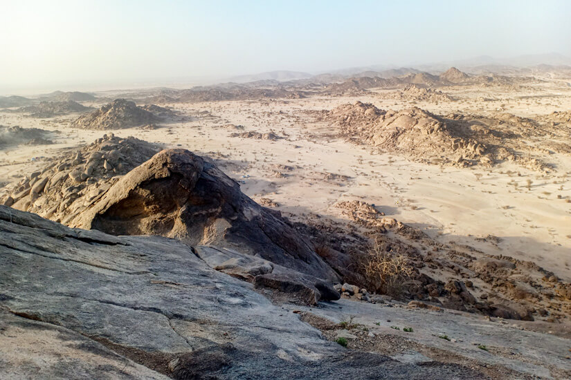 Eine Wanderung von Dschidda zum Moon Valley, auch bekannt als Wadi Al Qamar, ist ein Abenteuer, das euch die einzigartige Schönheit der saudi-arabischen Landschaft offenbart. Der Kontrast zwischen dem urbanen Treiben und der ruhigen Majestät der Natur kann kaum größer sein. Die Reise beginnt in der Innenstadt von Jeddah, von wo aus ihr euch auf den Weg in Richtung Osten macht, durch karg wirkende, doch faszinierend lebendige Wüstenlandschaften. Während der Reise eröffnen sich immer wieder neue Panoramen: Oasen, die wie Fata Morganas in der Hitze flimmern, und zerklüftete Gebirgszüge.