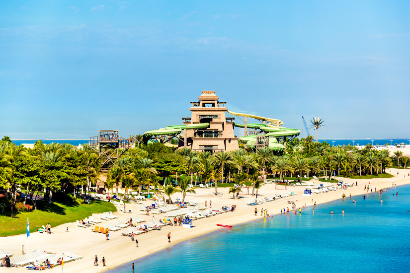 Gerade an heißen Tagen sollte in Dubai auch eine Abkühlung auf dem Plan stehen. Warum nicht einmal eine Alternative zum klassischen Strand suchen und in der im wahrsten Sinne des Wortes coolen Welt des Aquaventure Wasserparks abtauchen? Es gibt rund 30 Attraktionen rund ums Wasser, wie aufregende Wasserrutschen, einen 500 Meter langen Strand und natürlich reichlich Gelegenheiten für ein erholsames Bad. Somit wird sowohl der Wunsch nach Action als auch jener nach Entspannung in ein und derselben Location erfüllt.