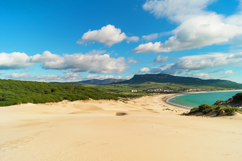 In der Provinz Cádiz im Süden des spanischen Festlandes erwartet euch die Duna de Bolonia als eine Mischung aus beeindruckendem Naturdenkmal und entspannter Strandatmosphäre. An seinen höchsten Punkten erreicht das Dünensystem mehr als 30 Meter und kann bis zu 200 Meter Breite für sich beanspruchen. Um die Schönheit der Region zu bewahren, hat die spanische Regierung betschlossen, dass wenig Bebauung vorgenommen werden soll, sodass die Natur ihren Freiraum behält.