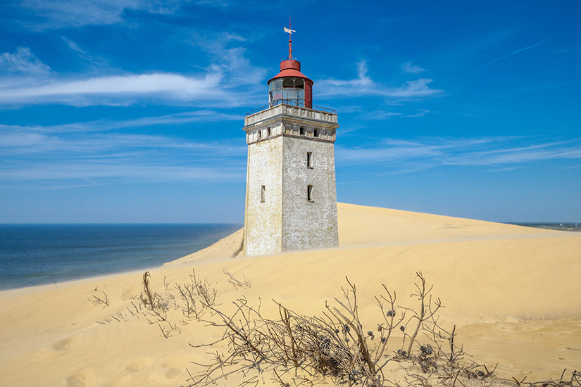 Zu den Highlights der Region gehört Rubjerg Knude Fyr, der Leuchtturm inmitten der Wanderdüne. Er wurde 1900 errichtet und konnte sein Signal 42 Meter über das Wasser senden. Beim damaligen Bau hatte sich der Sand jedoch erst rund zwei Meter aufgetürmt und über die kommenden Jahrzehnte wuchs die Wanderdüne derart stark, dass der Leuchtturm samt Nebengebäuden gefährdet wurde und zuletzt die Sorge bestand, er würde ins Meer stürzen. Fast 220 Jahre nach seinem Bau wurde er daher 2019 im Rahmen eines großen Bauprojekts um 80 Meter verschoben, um als Denkmal und Wahrzeichen erhalten zu bleiben.