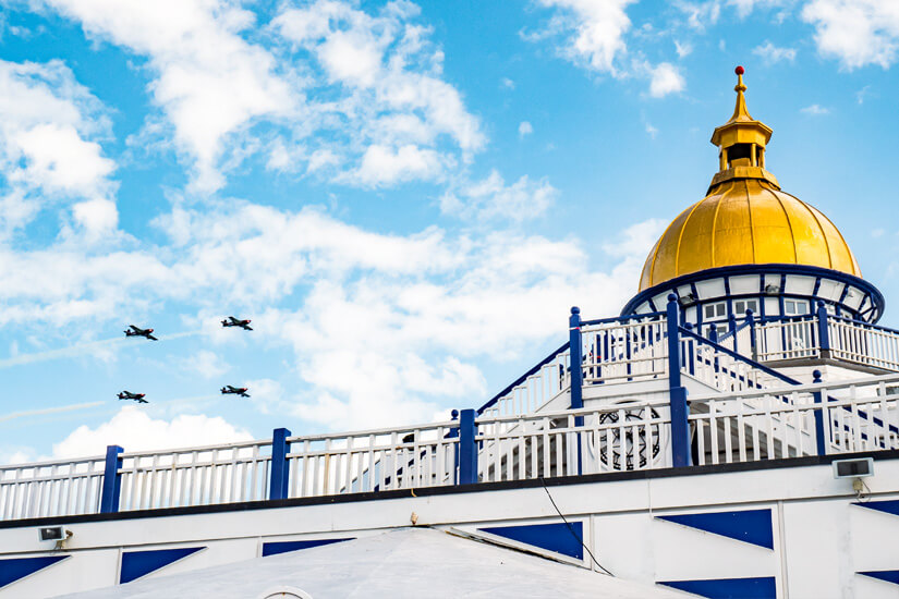 Jährlich hüllt die Eastbourne International Airshow die Stadt Ende August in ein aufregendes Licht. Dabei handelt es sich um eine Flugshow, bei der Objekte wie Hubschrauber, Jets und Kunstflugzeuge ihren großen Auftritt haben. Oftmals sausen sie rasant knapp oberhalb der Meeresoberfläche entlang. Eine der größten Flugshows der Welt zieht regelmäßig etwa eine Million Begeisterte an. Auch das Rahmenprogramm mit Kinderspielzone kann sich sehen lassen.