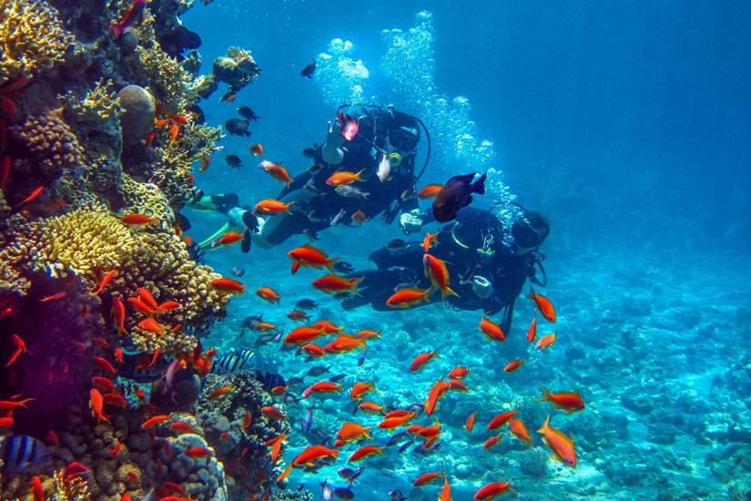 Tauchen oder Schnorcheln sollte auf jeden Fall oben auf eurer Liste stehen. Das Rote Meer hat unglaublich viel zu bieten und in El Gouna seid ihr ganz nah dran. Viele Hotels haben sogar ein eigenes Hausriff. Zu anderen gelangt ihr durch eine kleine Bootsfahrt. Taucht ihr hinab, seht ihr schon nach wenigen Metern Riffe in schillernden Farben, viele Fische und mit etwas Glück sogar Delfine.