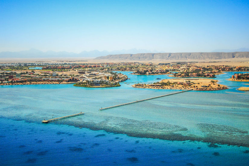 Der Tourismus ist eine äußerst wichtige wirtschaftliche Säule für das Land Ägypten. Beinahe jeder zehnte Ägypter arbeitet in irgendeiner Form in dieser Branche. Da liegt es natürlich nahe, an Stellen mit guten natürlichen und infrastrukturellen Voraussetzungen gezielt Orte für Besucher zu schaffen. El Gouna ist dafür das beste Beispiel. Im Jahre 1989 ließ der ägyptische Unternehmer Samih Sawiris den Grundstein für das neue Feriengebiet unweit der bekannten Hafenstadt Hurghada legen. Doch sollten es diesmal nicht einfach nur ein paar Hotels sein, die an den Strand gebaut wurden. El Gouna sollte lebendiger Ort werden, mit Bars, Discotheken, Restaurants, öffentlichem Nahverkehr sowie Schulen, einem Krankenhaus und sogar einem kleinen Flughafen für Charterflüge. Heute erstreckt sich El Gouna über eine Länge von fünf und eine Breite von zwei Kilometern. Das Besondere ist, dass sich viele Hotels und Geschäfte auf vorgelagerten Inseln in der Lagune befinden. Diese sind durch Brücken miteinander verbunden.