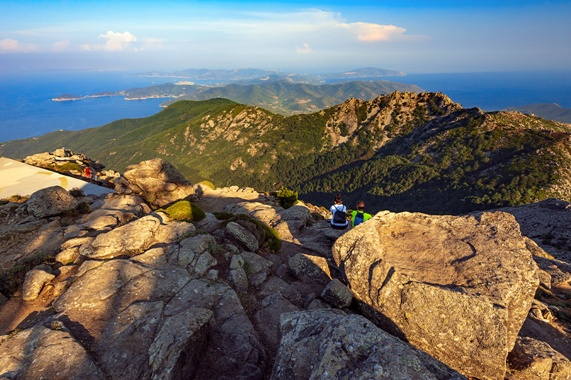 Der Monte Capanne ist mit seinen 1.019 Metern der höchste Berg der Insel und lädt zu ausgiebigen Touren mit geschnürten Wanderschuhen ein. Auf dem Weg nach oben eröffnet sich euch eine beeindruckende Pflanzenwelt, die von bunten Orchideen über mediterrane Macchia bis hin zu schmackhaften Pilzen reicht. Doch auch das Fernglas solltet ihr nicht in eurer Unterkunft vergessen, denn auch Raubvögel, Eidechsen und Mufflons könnten euren Weg kreuzen. Habt ihr den Gipfel erreicht, könnt ihr bei guter Sicht bis auf die benachbarten Inseln und das blaue Mittelmeer blicken. Doch keine Sorge, auch wenn ihr nicht so gut zu Fuß unterwegs seid, ist euch dieses Panorama nicht verwehrt. Auf die Bergspitze des Monte Capannes bringt euch nämlich in Marciana Alta auch eine Seilbahn mit offenen Gondeln innerhalb von 15 Minuten nach oben. Entscheidet ihr euch für die Wanderung, benötigt ihr von Poggio etwa zwei bis drei Stunden zu Fuß bis zur Gipfelspitze.