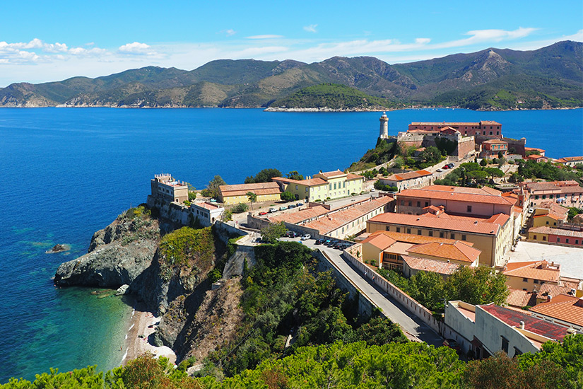 Die Gemeinde Porto Azzurro liegt an der Ostküste der Insel Elba und erinnert an ein Postkartenmotiv. Schon von weitem seht ihr die Festung Forte San Giacomo aus dem 17. Jahrhundert, die sich auf einem Felsvorsprung befindet. Diese wurde einst als Schutz- und Sichtungsort für Piratenangriffe genutzt und erzählt euch die Geschichte spanischer Herrschaft. Doch auch die barocke Kirche San Giacomo Apostolo sowie das Sanktuarium der Madonna del Monserrato laden euch auf eine spannende Reise in die Kulturgeschichte der Insel ein.