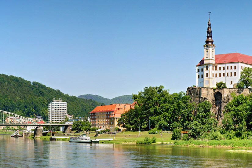 Die Stadt Děčín erstreckt sich an beiden Ufern der Elbe im Süden der Böhmischen Schweiz und blickt auf eine Geschichte zurück, welche bereits im Mittelalter begann. Sie ist sozusagen das Tor zum Böhmischen Mittelgebirge und entstand als Siedlung um eine Burg, welche auf einem 40 Meter hohen Felsen erbaut war. Bis heute wurde sie mehrfach erweitert sowie umgestaltet und hört mittlerweile auf den Namen Thun’sches Schloss.