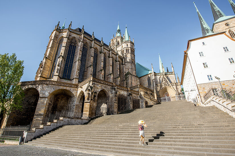 Als einstige bedeutende Kultur- und Handelsstadt hält Erfurt architektonische Highlights für euch bereit und verzaubert mit einer der größten und romantischsten Altstädte Deutschlands. Lasst euch von mittelalterlichem Charme begeistern und taucht in die faszinierende Historie ein. Ob imposante Klosteranlagen, gotische Kirchen oder prächtige Fachwerkshäuser – die Thüringer Hauptstadt entführt euch auf eine spannende Zeitreise.