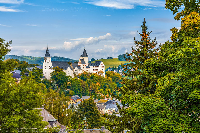 So altehrwürdig wie die Region ist, wundert es euch sicher nicht, bei einer Reise immer wieder auf Schlösser und Burgen zu treffen. Liebt ihr das Gefühl, durch Höfe, Gärten und Säle zu gehen, stoßt ihr beispielsweise südwestlich von Annaberg-Buchholz auf das Schloss Schlettau aus dem 14. Jahrhundert. Dort könnt ihr die Ausstellungsräume durchwandern und anschließend in der historischen Gastronomie zu Kräften kommen. Wunderschön ist auch das mittelalterliche Schloss Wolkenstein, erbaut auf einem 80 Meter hohen Felsen und mit mehreren Ausstellungsschwerpunkten, darunter „Gerichtsbarkeit im Mittelalter“.