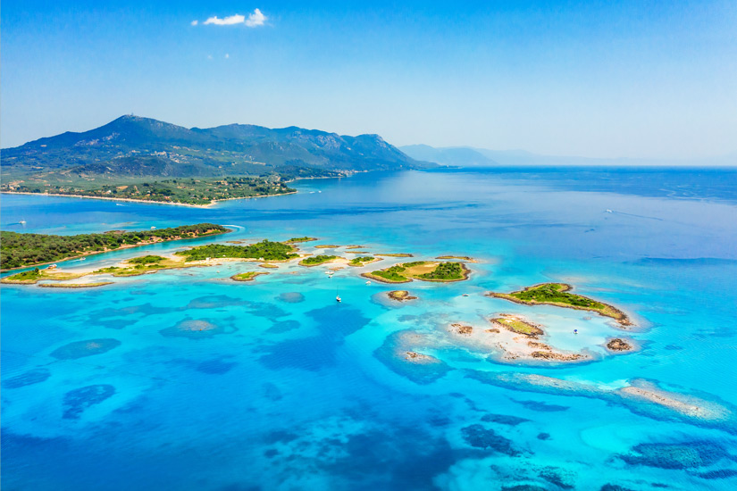 Größtenteils lässt sich Evia in Griechenland landschaftlich gesehen in drei Bereiche aufgliedern. Der Inselsüden wird von Stränden und Bergen geprägt. Letztere ziehen sich bis in die Inselmitte, die vom mehr als 1.740 Meter hohen Berg Dirfis dominiert wird. Im Norden gibt es noch mehr Hügellandschaften und Thermalquellen, die zu einer besonderen Art der Entspannung einladen. Durch diese unterschiedlichen Kulissen erwarten euch natürlich auch verschiedene Arten des Traumurlaubs. Über eine Millionen Hektar Waldfläche zeigen sich als pures Idyll für Wanderer und Naturfreunde. Die zahlreichen, unterschiedlichen Strände eignen sich für einen Badeurlaub unter der griechischen Sonne, vor allem, wenn ihr es weniger überlaufen als an den Stränden von Kreta oder der ebenfalls bekannten Insel Rhodos mögt. Die malerischen Fischerdörfe, Städte und Sehenswürdigkeiten zwischen den Buchten und Hügellandschaften punkten hingegen bei allen Sightseeing-Freunden.