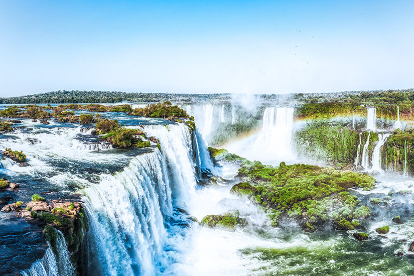 Weiter geht es – in die unendliche Weite der Pampa, zu Gauchos und Grillabenden unter dem Sternenhimmel. In Mendoza genießt ihr Wein mit Blick auf die Anden. In Patagonien erwarten euch Gletscher, stille Seen und windgepeitschte Berge, die euch das Gefühl geben, allein auf der Welt zu sein – und ganz bei euch. Und dann – fast zum Schluss – das große Finale: die Iguazú-Wasserfälle. Ihr hört sie, bevor ihr sie seht. Ein Donnern, das sich durch den Dschungel schiebt. Und dann steht ihr davor: über 270 Wasserfälle stürzen donnernd in die Tiefe, Regenbogen tanzen im Sprühnebel, Vögel kreisen im Licht. Es ist überwältigend. Und heilend zugleich.
