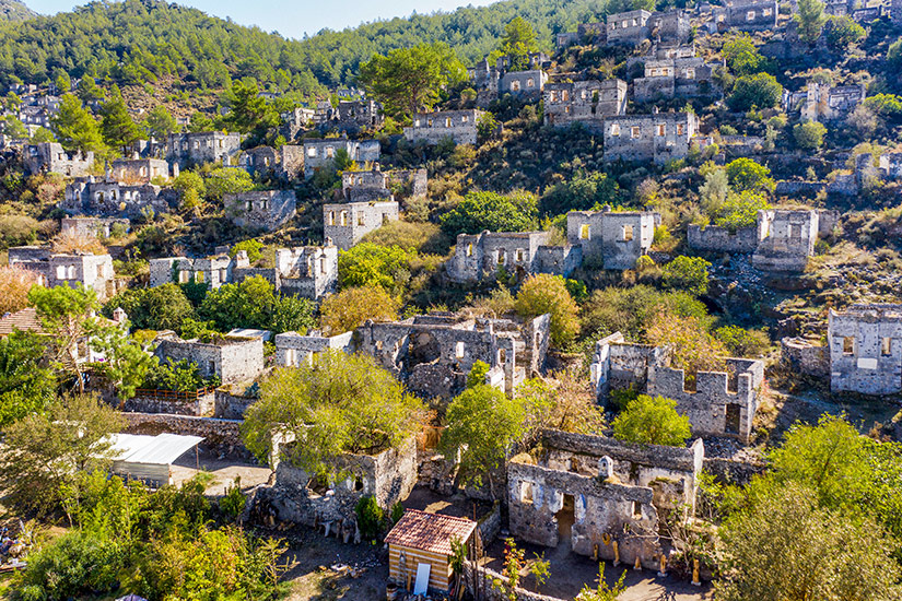 Wenige Kilometer südlich von Fethiye liegt das Dorf Kayaköy – umgeben von einer verlassenen Stadt. Das sind die Überreste des einst griechisch geprägten Levissi. Nach der Vertreibung der Griechen 1922/23 wurde die Stadt aufgegeben und gilt seitdem als Geisterstadt. Immerhin erlebt der Ort durch neugierige Besucher eine kleine Renaissance. Mehr als 3.500 Häuserruinen sind erhalten, darunter sogar zwei orthodoxe Kirchen. Freunde von Lost Places kommen hier auf jeden Fall auf ihre Kosten. Doch geht sorgsam mit den Ruinen um, denn Kayaköy steht unter Denkmalschutz und ist zudem UNESCO World Friendship and Peace Village.