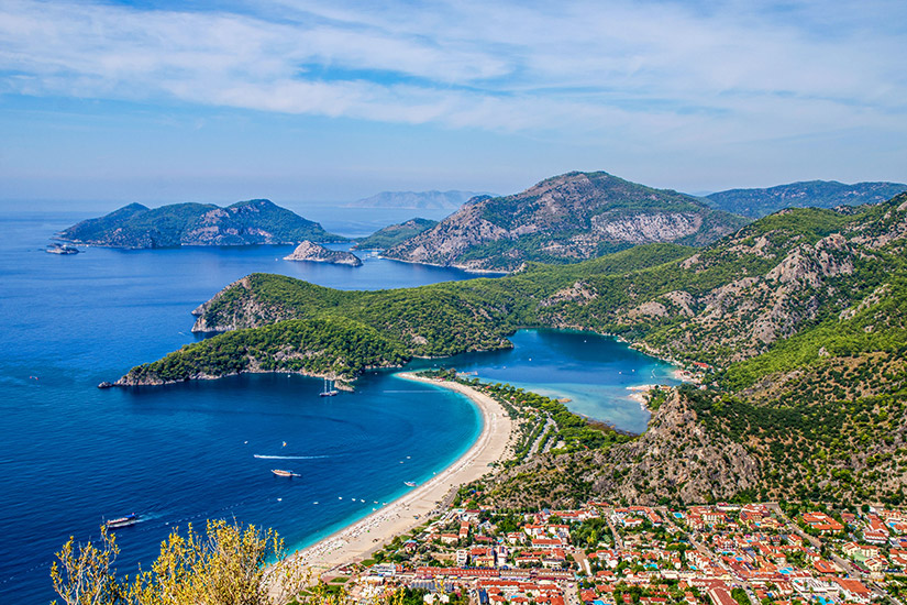 Die Türkische Ägäis ist reich an wunderschönen Urlaubsorten, von denen Bodrum sicher der bekannteste ist. Wer es etwas beschaulicher mag, der sollte einmal nach Fethiye fliegen. Die Stadt ist umgeben von malerischen Naturschönheiten und dem für viele Urlauber attraktivste Strand der ganzen Türkei.