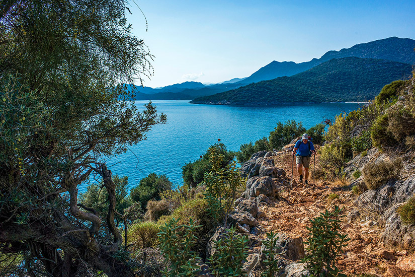 Ihr wandert gerne und wollt die Küste des antiken Lykiens zu Fuß entdecken? Dann herzlich willkommen auf dem Lykischen Weg! Der offizielle Fernwanderweg verläuft von Fethiye aus bis nach Antalya über zahlreiche Städte, Dörfer und Strände. Stolze 509 Kilometer müsst ihr für den kompletten Weg zurücklegen. Für den Anfang reicht aber vielleicht auch ein kleines Teilstück. Der Lykische Weg geht übrigens bis ins Altertum zurück. Hier verkehrten bereits Kamelkarawanen, um in den Ortschaften entlang des Weges Handel zu treiben. Heute gehört der Weg zu den Kulturrouten der Türkei. Tipp: Nehmt immer genug Wasser mit. Die Versorgung entlang des Weges kann in den Sommermonaten knapp werden.
