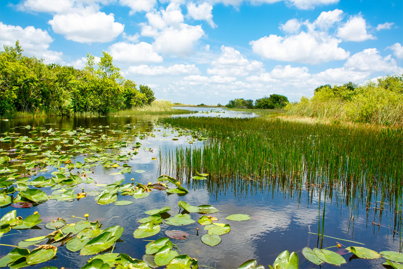 In den über 5.600 Quadratkilometer großen Everglades trefft ihr auf malerische Sümpfe, die von Mangroven- und Pinienwäldern gesäumt werden. Ein Großteil der Everglades wurde als Nationalpark deklariert und gehört zum UNESCO-Welterbe. Der Park liegt am südlichen Ende von Florida und gilt als absoluter Muss für euren Besuch.