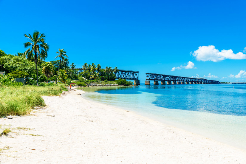Karibisches Flair gibt es im Bahia Honda State Park; einem der Keys, die den Everglades vorgelagert sind. Denn der Bahia Honda Beach vermittelt mit seinen Palmen, dem weißen Sand und dem mal hellblau oder leicht grün schimmerndem Wasser pure Urlaubsgefühle. Außerdem könnt ihr hier die vielen Pelikane bei der Fischjagd beobachten.
