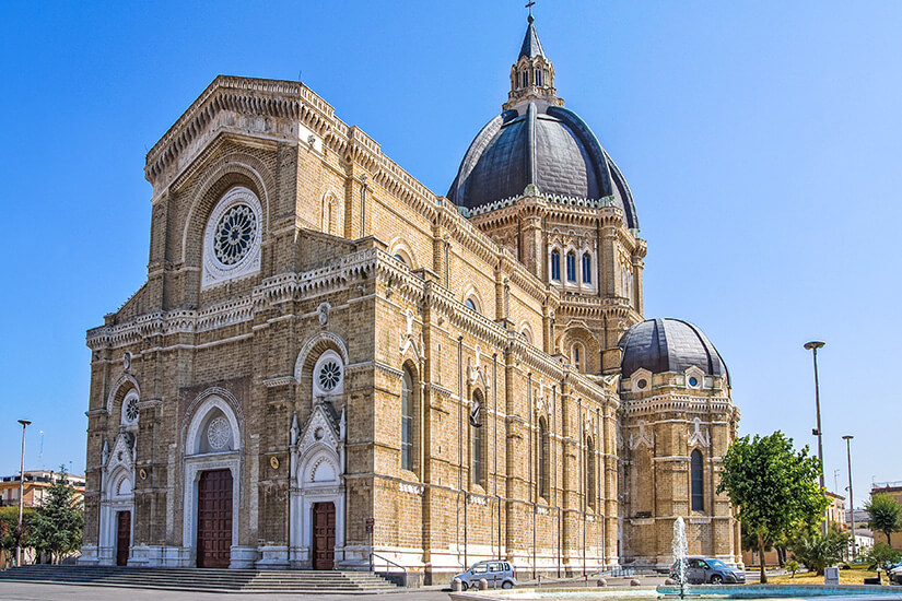 Wer hätte das gedacht: Die prächtige und nostalgisch anmutende Kathedrale, die ihr heute in Foggia seht, beruht auf einem liebevollen und detailgetreuen Wiederaufbau aus dem 18. Jahrhundert sowie auf Renovierungen nach dem Zweiten Weltkrieg. Das erste Gotteshaus aus dem 12. Jahrhundert wurde unglücklicherweise durch Erdbeben weitgehend zerstört und infolge des Krieges zusätzlich beschädigt. Davon ist heute nichts mehr zu sehen, denn der Barockbau verzaubert auch als „Neubau“ auf den ersten Blick und fungiert als eines der Wahrzeichen der Stadt Foggia.