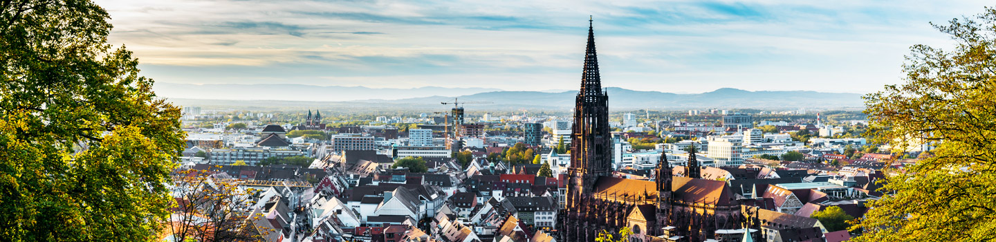 Freiburg im Breisgau wird gern als Hauptstadt des Schwarzwalds bezeichnet, denn sie liegt am westlichen Rand der wunderschönen Naturregion – genau dort, wo diese in die Rheinebene übergeht. Mitten im Dreiländereck zu Frankreich und der Schweiz zählt Freiburg im Breisgau zur südlichsten Metropole in Deutschland. Hier werden die meisten Sonnenstunden des Landes gezählt. Von den über 200.000 Einwohnern sind rund 30.000 Studenten. Sie verleihen der Stadt trotz mittelalterlichem Charme einen frischen Wind. Zahlreiche Freizeitaktivitäten und hippe Lokale laden auch das junge Publikum ein. Es fühlt sich in der Stadt ebenso wohl, wie Kultururlauber, die sich für die Geschichte Freiburgs interessieren.