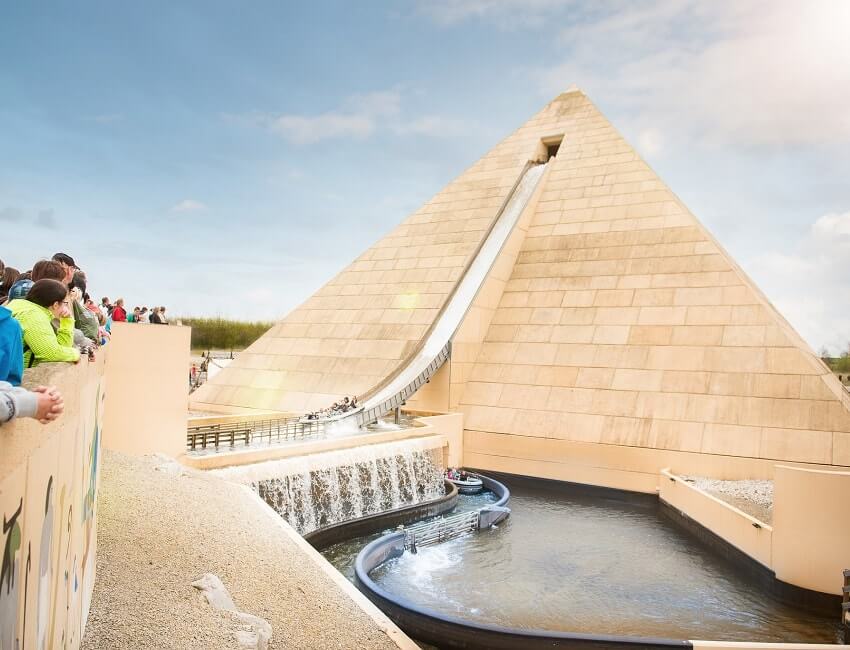 Nur wenige Schritte vom Schloss entfernt befindet sich das „Tal der Pharaonen“ mit unter anderem der Familienachterbahn „Cobra des Amun Ra“ sowie der Wildwasserbahn „Fluch des Pharao“ aus der 38 Meter hohen Pyramide.