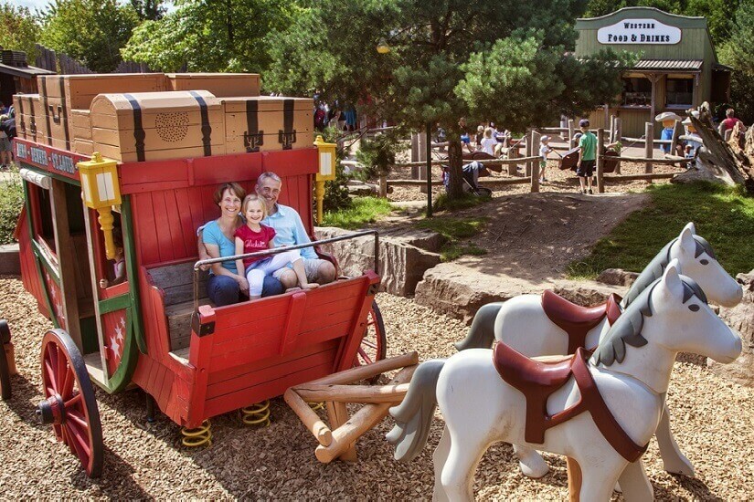 Wer es bodenständiger mag, kann im Bauernhof seine Fähigkeiten als Landwirt testen – lebensgroße Figuren inklusive. Melken üben und Traktor fahren werden hier zur echten Attraktion! Bei der Spielwelt im Steinbruch und der rasanten Verbrecherjagd ist wieder Action angesagt, wenn die Kids entweder mit schwerem Gerät arbeiten oder als Nachwuchspolizisten unterwegs sind. Auf 500 m² gibt es mit der Westerncity zudem eine tolle Kulisse für echte Cowboys und coole Sheriffs, inklusive Rodeo.