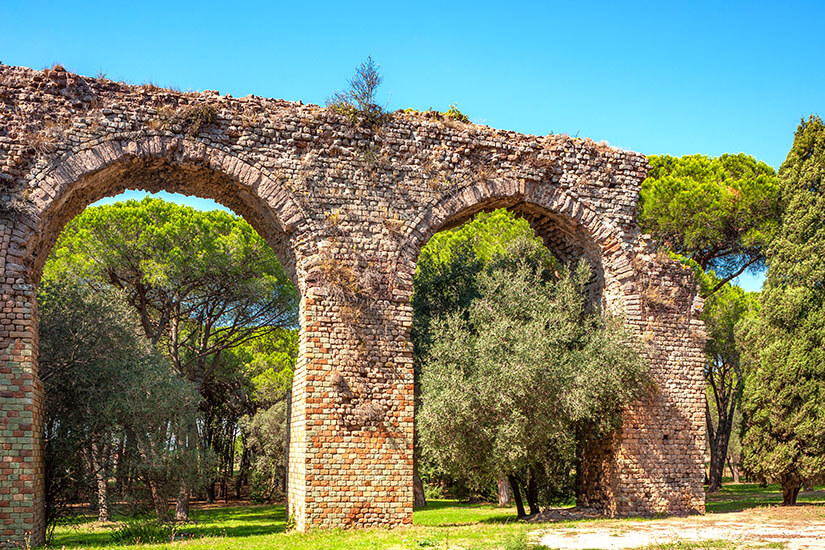 Ein weiteres beeindruckendes Zeugnis römischer Ingenieurskunst ist der antike Aquädukt von Fréjus, der einst frisches Quellwasser aus den Bergen der Siagne über eine Strecke von 40 Kilometern in die Stadt leitete. Obwohl heute nur noch Teile erhalten sind, könnt ihr bei einem Spaziergang entlang der “Route des Aqueducs” verschiedene gut erhaltene Abschnitte entdecken. Besonders eindrucksvoll sind die „Arches de Sainte-Croix”, eine Reihe von Bögen, die ein Tal überspannten und heute wie zeitlose Skulpturen in der Landschaft stehen.
