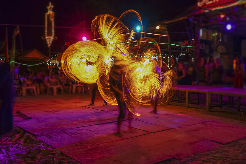 Die Feier am Strand ist durch die Vollmond-“Beleuchtung” ein magisch anmutendes Highlight. Hinzu kommt, dass die Neonfarben an der typischen Kleidung oder auf den Körper gemalt im Schwarzlicht bunt leuchten und der Party eine zusätzlich besondere Atmosphäre verleihen. Nicht vergessen dürft ihr natürlich auch die Vielfalt des Angebotes, die unter anderem von Feuershows geprägt wird. Auch habt ihr hier die Gelegenheit, mit Menschen aus allen möglichen Ländern in Kontakt zu treten und gemeinsam ausgelassen zu feiern.