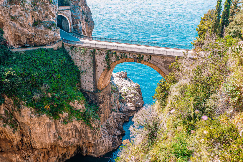 Bei dem Begriff Fjord denken wohl die meisten Menschen direkt an Norwegen. Doch auch in Italien findet sich ein solches Highlight: Und zwar exakt an dem Urlaubsort, den wir gerade vorstellen. Es handelt sich um eine echte Besonderheit, denn der Fjord von Furore (Fiordo di Furore) ist der einzige seiner Art im gesamten Raum des Mittelmeeres. Eindrucksvoll präsentiert er sich von Felsen eingerahmt und von einer Brücke überspannt, die ihr auch betreten könnt. Ein schmaler Kieselstrand, umgeben von an die Felsen gebauten Häuser, prägt zusätzlich das Bild des Fjordes, der einst durch die Bewegungen des Wassers geformt wurde. Über Millionen von Jahren sollen sich die Wellen in den Stein gegraben haben.