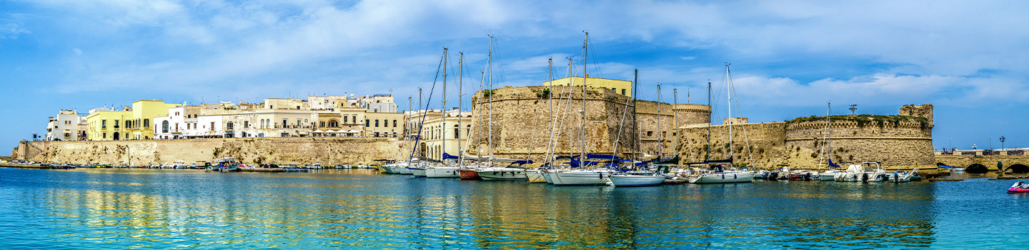 Gallipoli bedeutet übersetzt „Schöne Stadt“ und wird auch gern „Perla dello Ionio“ genannt, da sie für viele eine Perle am Ionischen Meer am Golf von Tarent ist. Die Hafenstadt befindet sich in der italienischen Provinz Lecce und setzt sich aus der Altstadt auf einer Felseninsel und der Neustadt auf dem Festland zusammen. Die beiden Teile werden durch eine Brücke miteinander verbunden. Bis zur Provinzhauptstadt Lecce sind es rund 40 Kilometer und bis nach Tarent 109 Kilometer.