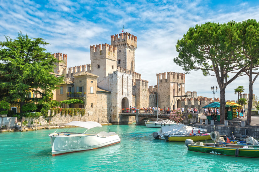 Diese eindrucksvolle Wasserburg aus dem Jahr 1250 zählt zu den besterhaltenen Festungsanlagen Norditaliens und demonstriert eindrucksvoll die Macht der einst herrschenden Scaliger-Familie. Mit ihren trutzigen Mauern, die sich aus dem Blau erheben, sowie den Zinnen und Türmen zählt sie am Gardasee zu den schönsten Sehenswürdigkeiten.