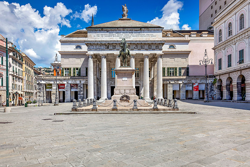 Die Piazza de Ferrari rahmt das Teatro Carlo Felice an einer Seite. Dabei handelt es sich um ein im frühen 19. Jahrhundert eröffnetes Opernhaus und Theater. Im Zweiten Weltkrieg wurde das Gebäude zum Teil zerstört und unter Beachtung der historischen Besonderheiten rekonstruiert. Der Haupteingang erinnert bis heute auf den ersten Blick an einen antiken Tempel aus Griechenland und entführt euch auf Wunsch in die Welt der Künste. So gehören Opern und Ballettaufführungen zum Standardprogramm. Auch Orchesteraufführungen sind je nach Verfügbarkeit zu besuchen. Die Reiterstatue vor dem Haupteingang des Theaters zeigt übrigens einen italienischen Freiheitskämpfer: Giuseppe Garibaldi.
