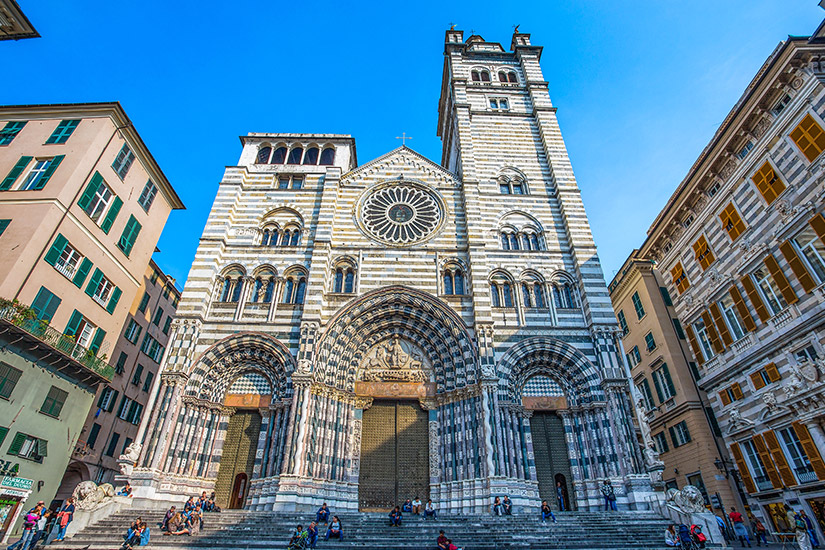 Die Kathedrale San Lorenzo stammt ursprünglich aus dem 11. und 12. Jahrhundert, wurde aber im Laufe der Zeit häufig restauriert und erweitert. Durch einen Brand waren einige der Veränderungen unabdingbar. Das heutige Gewand des Gotteshauses beruht größtenteils auf dem Umbau im frühen 14. Jahrhundert. Über dem Hauptportal der Kirche könnt ihr ein Relief mit Jesus Christus und dem Heiligen Lorenzo sehen. Im Inneren warten Kuriositäten wie der Nachbau einer im Zweiten Weltkrieg nicht gezündeten Bombe. Die Kathedrale ist Genuas wichtigste Kirche.