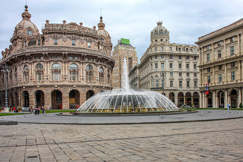 Das belebte Zentrum Genuas bildet die Piazza de Ferrari. Der große Platz ist ein typischer Treffpunkt für eine Kaffeepause oder einen Bummel entlang der alten Gebäude. Dazu zählt zum Beispiel das Teatro Carlo Felice. Ein Bronzebrunnen aus dem frühen 20. Jahrhundert komplettiert die Szenerie. Shoppingfreunde kommen rund um den Platz auf ihre Kosten, wo verschiedene Einkaufsstraßen beginnen.