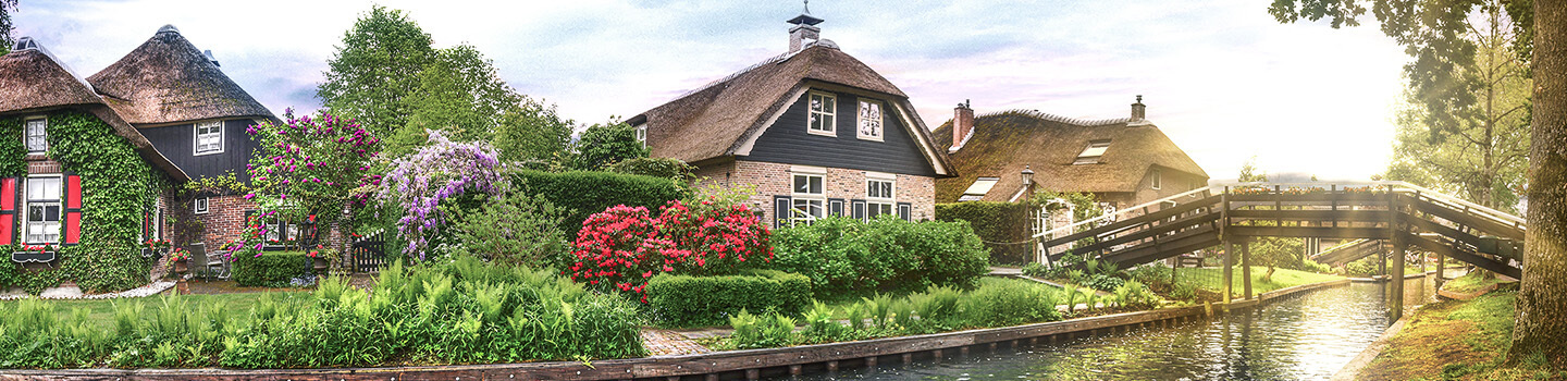 Die etwa 110 Kilometer von der Hauptstadt Amsterdam entfernte dörfliche Kulisse präsentiert sich in nächster Nähe zu Waldlandschaften, Seen und dem malerischen Zwarte Meer: einfach perfekt für Naturliebhaber! Spazier- und Wanderziele gibt es reichlich, doch auch der Ortskern selbst kann begeistern. Dank der Grachten erhält Giethoorn von Einheimischen und Gästen häufig den charmanten Beinamen „Venedig des Nordens“. Schlendert über die kleinen Inseln, die durch mehr als 170 Brücken miteinander verbunden sind, und kostet die weitgehende Autofreiheit aus, um Körper, Geist und Seele rundum zu entspannen.