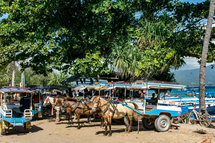 Wenn ihr lieber faulenzen wollt, könnt ihr eure Lieblingsinsel auch von einer Pferdekutsche aus betrachten. Die bunten “Cidomos” sind das Hauptverkehrsmittel auf den Gilis und ein ideales Gefährt, um die Seele baumeln zu lassen. Lehnt euch einfach zurück und lasst euch durch das wunderschöne Ferienparadies schaukeln. Die romantische Kutschfahrt einmal um Gili T dauert etwa eine Stunde.