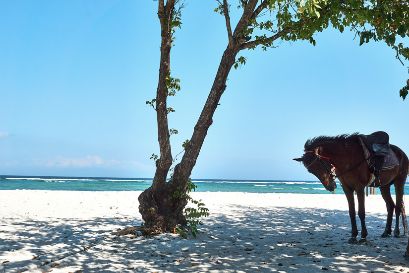 Neben Spazierengehen und Radfahren könnt ihr auf den sandigen Inselwegen auch hervorragend reiten. Auf allen drei Gilis gibt es geführte Touren um die ganze Insel. Besonders beliebt sind Strandausritte zum Sonnenuntergang. Vom Pferderücken genießt ihr einen atemberaubenden Ausblick. Wer Reiterfahrung hat und es spritzig mag, darf mit den gut ausgebildeten Tieren in die Brandung.
