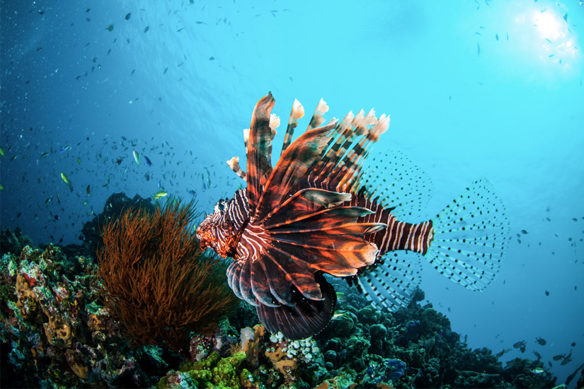 Die Unterwasserwelt rund um die Gili Inseln verspricht einzigartige Erlebnisse für Schnorchler und Taucher. Einer der Höhepunkte ist zweifellos die Begegnung mit einer Meeresschildkröte. Besonders gut könnt ihr Grüne Meeresschildkröten und Karettschildkröten vor Gili Trawangan und Gili Meno beobachten. Mit einer Ausrüstung zum Tauchen oder Schnorcheln müsst ihr euer Tagesgepäck nicht belasten. Ihr könnt es überall ausleihen. Also nichts wie hinein in das Wasser! Zwischen den Inseln herrscht eine beständige Strömung, wodurch das Wasser sehr klar ist. An sandigen Hängen und steilen Riffwänden ist eine breite Palette an bunten Korallenbewohnern anzutreffen. Auch Riffhaie, Barrakudaschwärme, Manta- und Adlerrochen zeigen sich häufig. Vor der Küste von Gili Air lässt sich ein kleines Wrack betauchen.