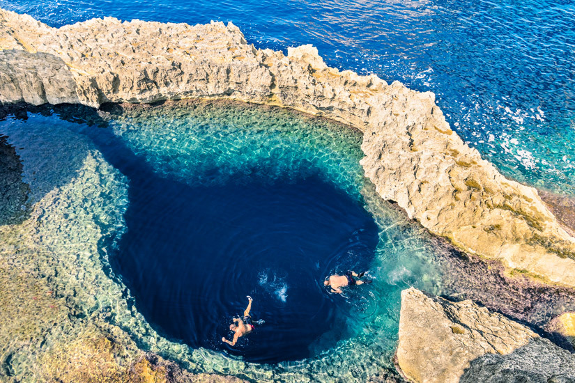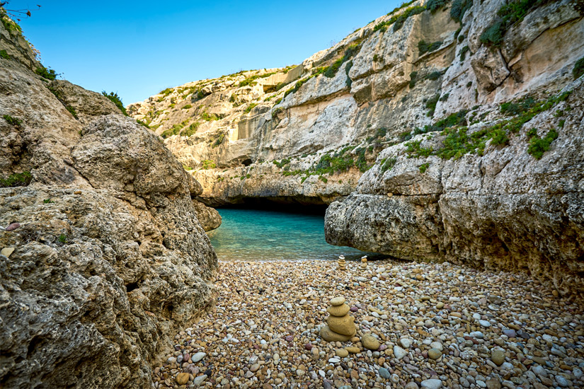 Wenn ihr statt im Meer lieber “in einem See baden” wollt, dann fahrt in den Westen Gozos, zur Inland Sea. Dabei handelt es sich um einen winziges Stück Meer, das über einen Tunnel mit dem Mittelmeer verbunden ist. Ihr könnt dort baden und schnorcheln oder auch durch den Tunnel auf die offene See schwimmen.