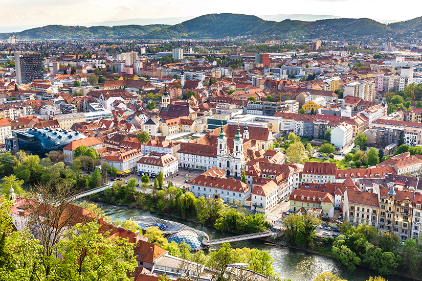 Über Graz gibt es viel zu berichten, denn die Stadt blickt auf eine bewegte Geschichte zurück und ist bekannt für ihre bunte Kunst- und Kulturszene. Die Geschichte von Graz beginnt bereits im Jahr 3.000 vor Christus. Seitdem beherbergte die Stadt unter anderem Slawen, Römer und Habsburger, welche die Historie von Graz maßgeblich mitgestalteten. Heute leben rund 300.000 Einwohner in der Landeshauptstadt der Steiermark, die nach der Hauptstadt Wien gleichzeitig die zweitgrößte Stadt Österreichs ist. Trotzdem strahlt Graz eine ursteirische Gemütlichkeit aus, die fernab von städtischer Hektik liegt. So hat sich Graz seinen dörflichen Charakter bewahrt und würde sich trotz der Fläche von 127,28 Quadratkilometern niemals als Metropole bezeichnen.