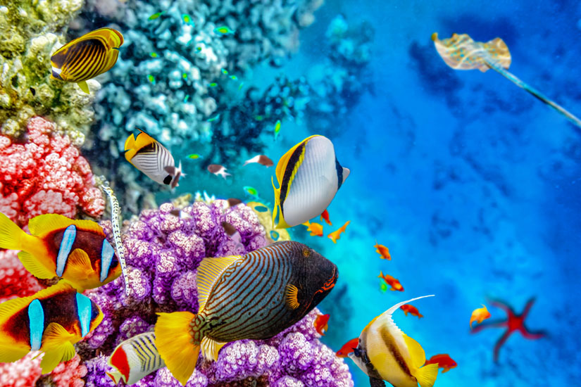 Das riesige Riff besteht genaugenommen aus mehreren kleineren Riffen. Es wird geschätzt, dass es über 2.900 sind. Sie bilden nicht nur für Korallen einen wichtigen Lebensraum, sondern auch für mehrere hundert Arten von Schwämmen, Weichtieren, Fischen, Seepferdchen und Seesternen sowie für über 200 Vogelarten. Am Great Barrier Reef leben zudem sechs der weltweit insgesamt sieben Arten von Meeresschildkröten. So ist das Riff ein Paradies für Natur- und Tierliebhaber, welche die bunte Unterwasserwelt hautnah erleben wollen. Da das Riff zudem von fast 1.000 tropischen Inseln umgeben ist, werden hier auch Ausflüge mit dem Boot zu einem unvergesslichen Erlebnis. Ihr könnt bei einer Sichttiefe von bis zu 60 Metern auch vom Boot aus erkennen, wie artenreich das Great Barrier Reef ist. Macht ihr einmal eine Pause, so erwarten euch traumhaft weiße Sandstrände, an denen ihr die Seele baumeln lassen könnt. Viele Reisende lassen sich zusätzlich in einem Helikopter oder einem Wasserflugzeug von dem einzigartigen Anblick der Landschaft verzaubern.
