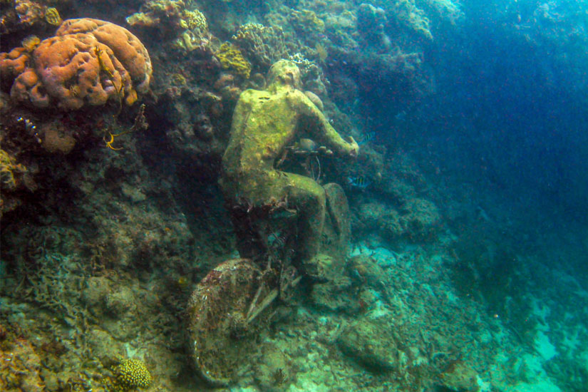 Ihr könnt in die überschaubare Tiefe von fünf Metern tauchen und erlebt einen surreal anmutenden Anblick durch die 75 Figuren, die sich auf etwa 800 Quadratmeter verteilen. Viele Skulpturen stellen alltägliche Situationen dar. Der Künstler wollte damit unter anderem auf die Fragilität unserer Ozeane trotz ihrer riesigen Größe hinweisen.