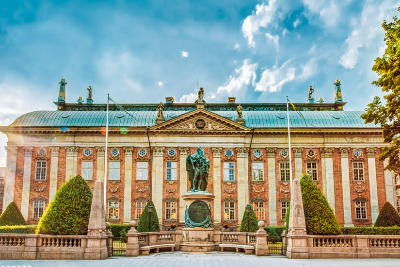 Bei eurem Streifzug durch Gamla Stan kommt ihr am Riddarhuset (Ritterhaus) vorbei, das einst dieselbe Funktion erfüllte wie das englische Oberhaus. Der aus dem 17. Jahrhundert stammende und im Wesentlichen im holländischen Klassizismus gehaltene Bau gehört heute noch dem Adel. Den Sitzungssaal schmücken die Wappen von 2.326 Adelsfamilien.