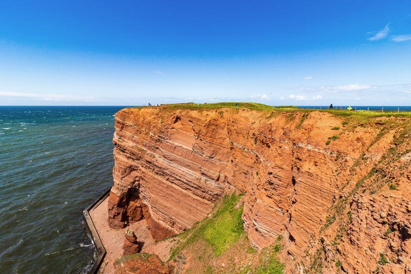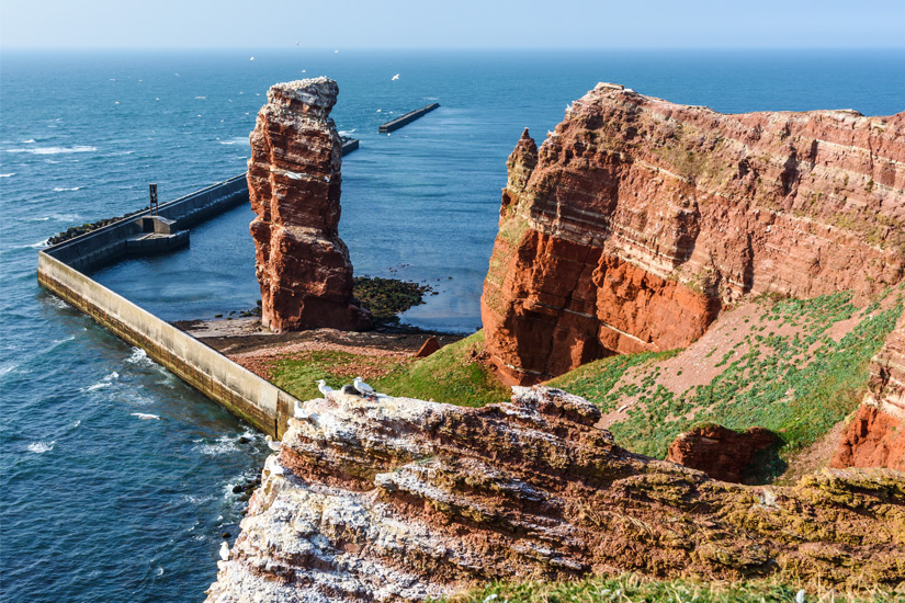 Dafür eignet sich beispielsweise ein kompletter Inselrundgang über den Klippenweg, bei dem ihr rund drei Kilometer unterwegs seid und dabei alle Landschaftsformen von Helgoland hautnah bestaunen könnt. Auf eurem Spaziergang begegnen euch malerische Ausblicke, die zum Träumen einladen und euch den Alltagsstress ganz schnell vergessen lassen. Hier treffen bunte Sandsteinfelsen auf grüne Oasen und versprechen Entspannung pur. Auch ein Aufstieg auf den 61,3 Meter hohen Pinneberg lohnt sich. Er gilt als höchste Erhebung der Insel und eröffnet euch einen einmaligen Ausblick auf Helgoland und die raue Natur der Nordsee.