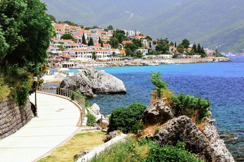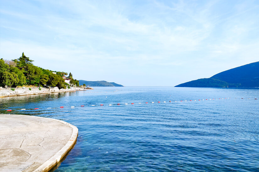 Entlang der Küste von Herceg Novi folgt ein Idyll dem nächsten, eingerahmt von einer Szenerie, die ihresgleichen sucht. Statt überlaufener Badeorte erwarten euch hier ruhige Uferabschnitte mit klarem Wasser und unverfälschter Atmosphäre. Feiner Kies und runde Steine prägen die Strände – so bleibt das Wasser besonders sauber, weil sich kaum Sediment aufwirbelt. Die Kombination aus tiefblauem Meer und imposanter Bergkulisse schafft ein Erlebnis, das Entspannung und Staunen vereint.
