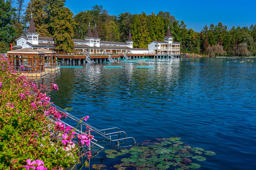 Was wäre der Kurort ohne seinen Thermalsee! Mit 4,4 Hektar Ausdehnung ist er der größte natürliche Thermalsee der Welt, eingebettet in eine malerische Kulisse bestehend aus 50 Hektar Laubwäldern. Er befindet sich in einem in 38 Meter Tiefe befindlichen Krater, der immer wieder heißes Wasser in den See spuckt. Dessen Temperatur sinkt selbst im kalten Winter nicht unter 24° Celsius, was den Thermalsee ganzjährig zum faszinierenden Erholungsziel macht.
