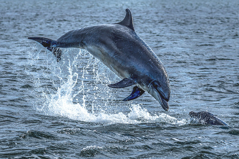Delfine sind faszinierende Kreaturen, die mit ihren gewagten Sprüngen auf einzigartige Art und Weise mit ihrer Umwelt kommunizieren. In den schottischen Highlands habt ihr außergewöhnlich gute Chancen, diese faszinierenden Meeresgeschöpfe aus nächster Nähe zu beobachten. Dafür könnt ihr in vielen Fällen sogar an Land bleiben. Mutige wagen sich im Neoprenanzug oder dem Kanu hinaus aufs Meer, um den Delfinen noch näher zu sein.
