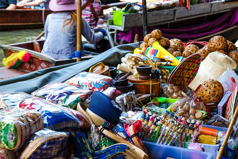 Am besten eignen sich Märkte wie der Sam Phan Nam Floating Market, der zwar eine kleine Eintrittsgebühr kostet, aber euch mit klassischen Souvenirs und besonderen, kunsthandwerklichen Stücken zum Kauf verführen will. Als Abwechslung zum Shoppingbummel steht eine Bootsfahrt zur Auswahl.