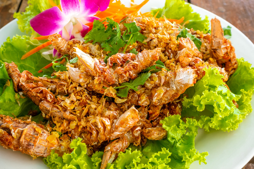 Thailändisches Essen ist so vielfältig, dass ihr während eures Aufenthaltes sicher nicht alle Köstlichkeiten probieren könnt. Wir haben vorab einen Tipp für die Auswahl: Macht es ganz traditionell und bestellt euch in Hua Hin einen Salat, eine scharfe, eine flüssige und eine trockene Speise. So habt ihr schon verschiedene Aspekte der thailändischen Küche abgedeckt. Wenn ihr Fischliebhaber seid, könnt ihr Spezialitäten wie den lauwarmen Meeresfrucht-Salat Yam Talay oder gebratenen Reis mit Fischbeilage bestellen. Fleischfans läuft bei der Hackfleisch-Leckerei Pad Kra Pao oder beim Massaman Curry mit Hähnchenfleisch sicher rasch das Wasser im Munde zusammen. Und Vegetarier lieben das Nationalgericht Pad Thai in fleischloser und fischfreier Variante: Es sind die weitläufig bekannten Bratnudeln!
