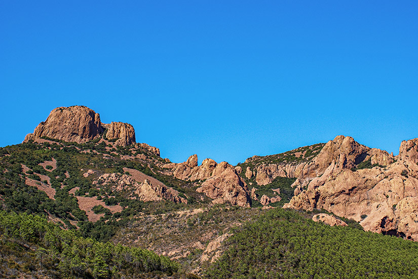 Das Massif des Maures liegt unmittelbar im Rücken von Hyères und bildet den landschaftlichen Gegensatz zu den Stränden und dem Meer. Die dicht bewaldeten Hügel sind zum Teil Schutzgebiet, aber größtenteils auch als Wanderareal erschlossen. Zahlreiche Wanderrouten führen durch das Massiv, teilweise sogar bis zur Halbinsel von Saint-Tropez.