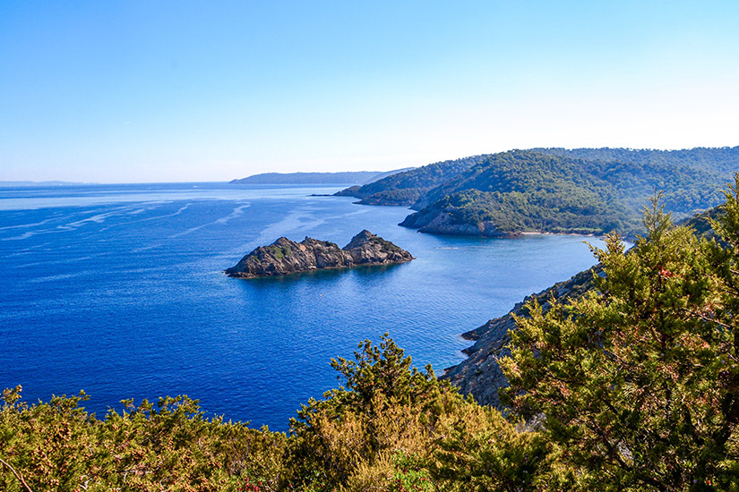 Genaugenommen erstreckt sich der Nationalpark Port-Cros nicht nur über die gleichnamige Insel, sondern auch über weite Teile von Porquerolles sowie kleinere Inseln und das Küstengebiet drumherum. Besucher und Einheimische müssen sich an strenge Regeln halten. So ist etwa das Rauchen oder das Mitführen von Hunden verboten.